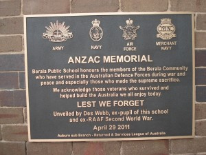 Berala Public School Anzac Memorial Plaque 2011