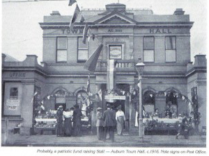 Patriotic Fundraising Stall, Auburn Town Hall c 1916